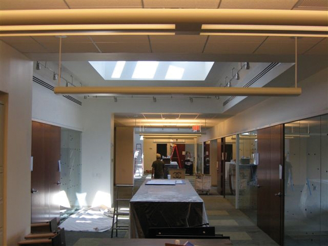 Dolphin Construction performed extensive demolition of existing partitions and finishes, while maintaining client business operations. Dolphin personnel managed the construction of new telecommunications and data rooms, executive offices, conference rooms, pantries, copy rooms and storage areas. Without interfering with building operations, Dolphin Construction installed new electrical power and lighting systems, HVAC systems and fire suppression systems. Some of the new finishes highlighted extensive custom millwork, glazing and acoustical ceiling systems.